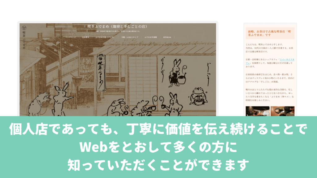 たとえば、カフェを探している人がGoogleで「出町柳 カフェ」と検索すると、私たちの喫茶店のWebサイトが1ページ目に表示されます。