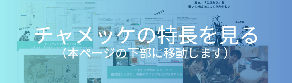 私たちチャメッケならではの特長を、3つの切り口でご説明しています。